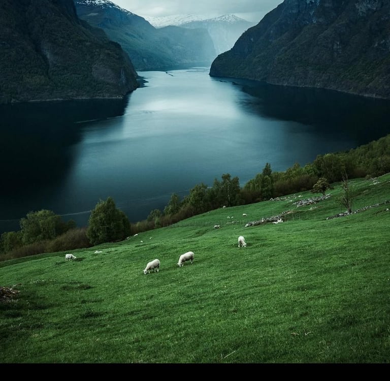 Un pequeño pueblo situado al final del Aurlandsfjord. Es famoso por su ubicación entre montañas muy empinadas que descienden directamente hacia el fiordo. Flåm es uno de los destinos más conocidos de Noruega por su entorno espectacular y su ambiente tranquilo.