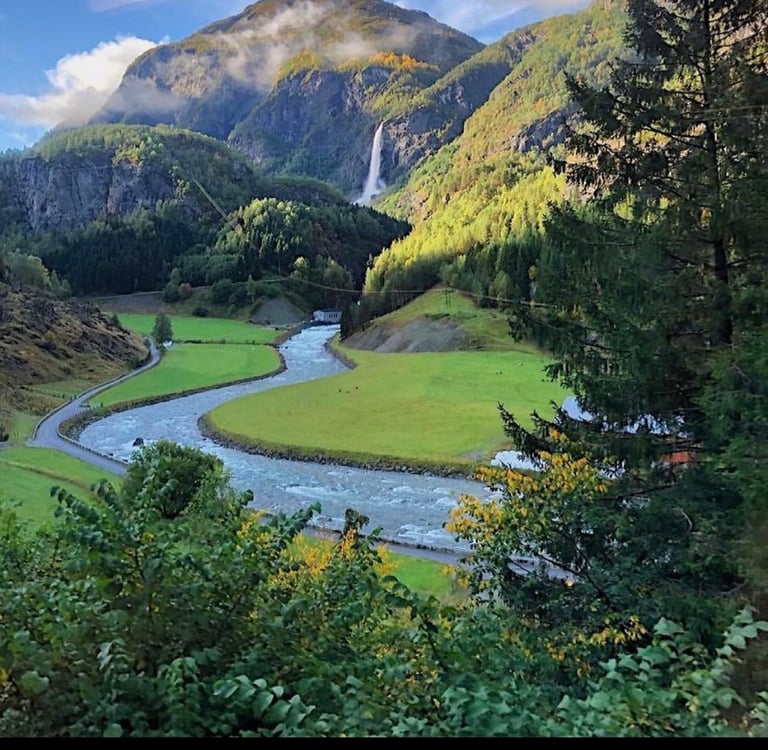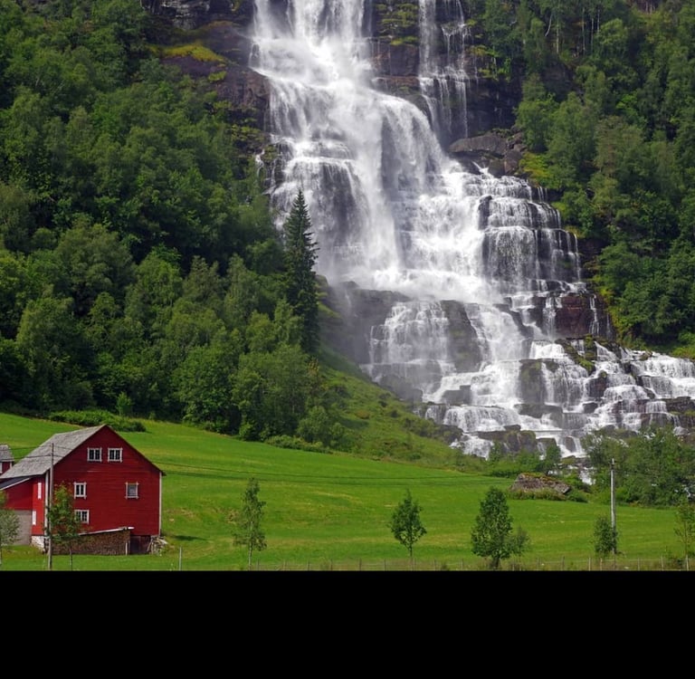 Una cascada icónica de la región de Voss, conocida por su impresionante caída de agua rodeada de naturaleza verde. Es una parada perfecta para comenzar el día en contacto con el entorno natural y disfrutar de un paisaje típico noruego.