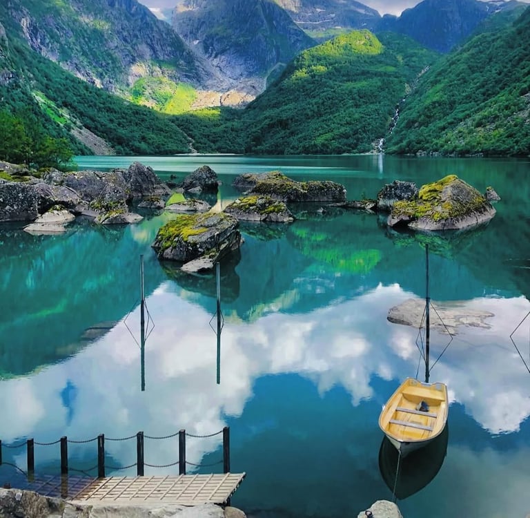 Bondhusvatnet está alimentado por el deshielo del glaciar y es uno de los lugares más emblemáticos de la región por su combinación de agua cristalina, montañas y sendero panorámico. La caminata hasta el lago es agradable y permite disfrutar del entorno con calma.