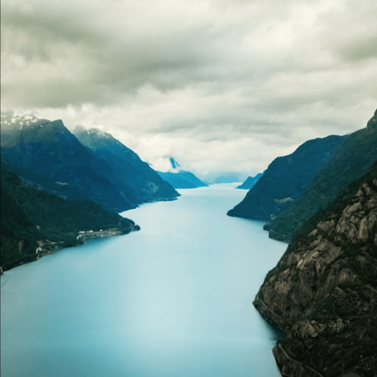 Sirfjord Un brazo del fiordo que destaca por sus vistas abiertas y su entorno natural, aportando continuidad al impresionante paisaje de la región.